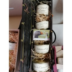 Superbe coffret bambou: Foie gras d'oie 250g, Foie gras d'Oie 190g,Rillettes d'oie 190g, Pâté du Castagnet 190g